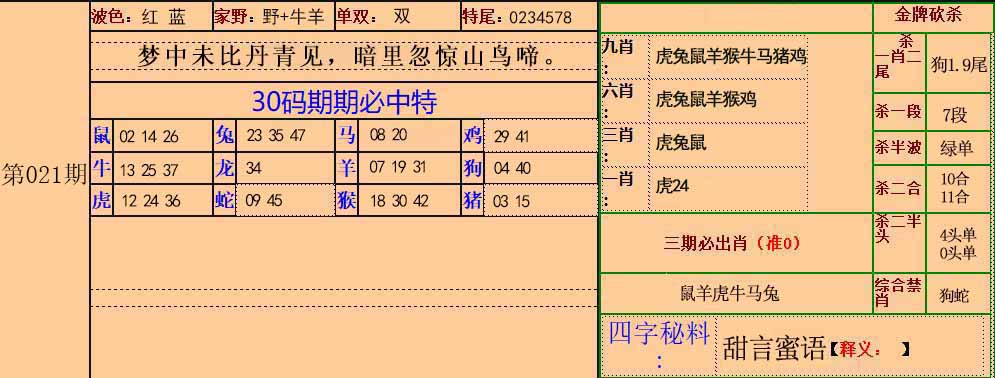 第021期新澳下半场